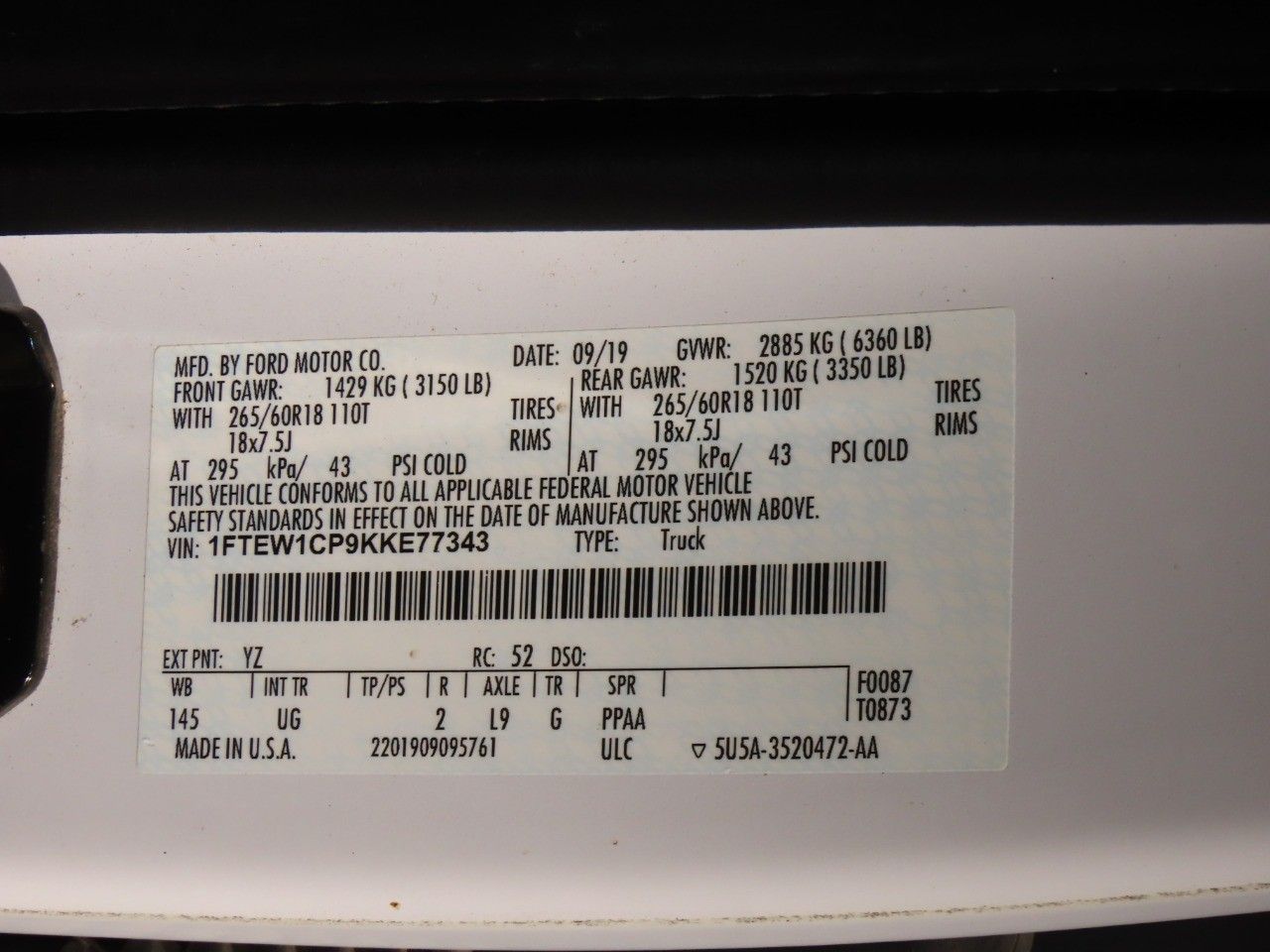 Buy with confidence! This 2019 F-150's story can be verified with a CarFax Title History report. It has had only one previous owner. Don't overpay for the truck you want. Get the right price right here. When you are ready to hook up that trailer, you'll do it with confidence. Gross Vehicle Weight Rating (GVWR) of 6,280+ lbs, Maximum Towing Capacity of 5,000+ lbs, 325 horsepower, 400 foot-pounds of torque, 2.7L V6 Ecoboost, Electronic 10-Speed Automatic, Rear Wheel Drive, and crew cab with a short bed. Save money with a fuel-efficient combined EPA estimated rating of 22 MPG combined. A backup camera makes all the difference when parallel parking. Features include: power mirrors, security system, an air filter for the cabin, cruise control and tire pressure monitoring system.