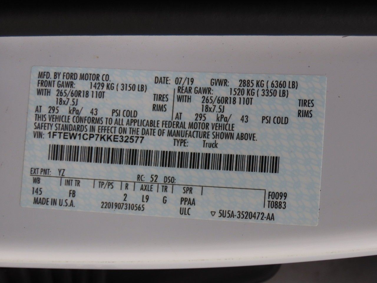 This baby is going to fly off the lot at this price. Muscle and torque to pull whatever you hitch it to! Gross Vehicle Weight Rating (GVWR) of 6,280+ lbs, Maximum Towing Capacity of 5,000 lbs, 325 horsepower, 400 foot-pounds of torque, 2.7L V6 Ecoboost, Electronic 10-Speed Automatic, Rear Wheel Drive, and crew cab with a short bed. With an EPA estimated fuel rating of 22 MPG combined, you'll start saving cash at the pump. This 2019 F-150 is going to fly off the lot. Come see it while it lasts! You'll forget how you ever drove without a rear view camera. You don't see deals like this every day. Powered mirrors are a welcomed upgrade. This truck includes: security system, an air filter for the cabin, cruise control, low tire pressure warning and airbags.