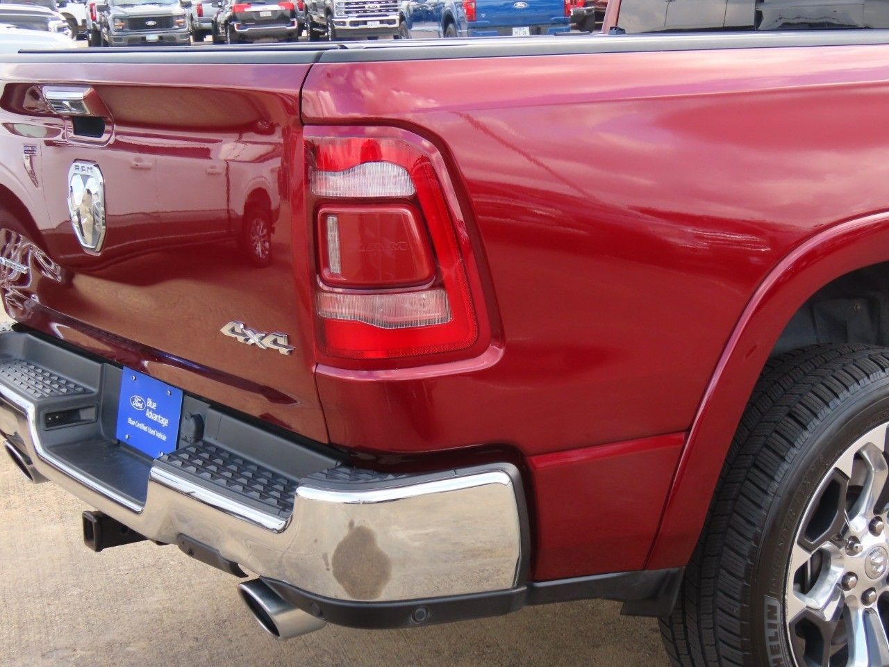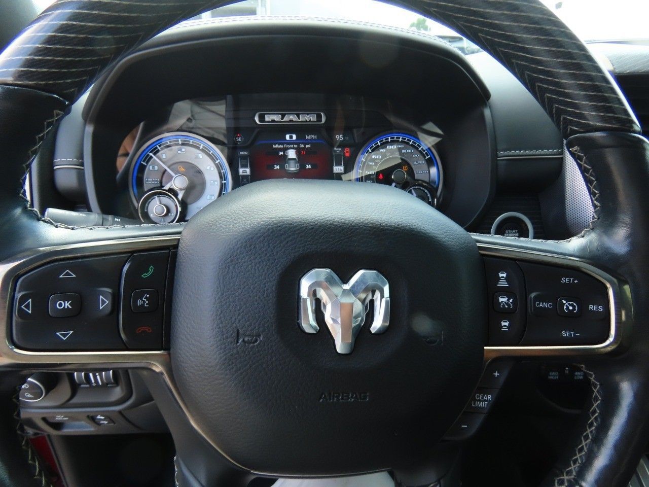 Rest assured when purchasing this 2019 1500. CarFax Title History report is included. It has had only one previous owner. You better not buy until you see this truck. When you are ready to hook up that trailer, you'll do it with confidence. Gross Vehicle Weight Rating (GVWR) of 6,900+ lbs, Maximum Towing Capacity of 6,280+ lbs, 395 horsepower, 410 foot-pounds of torque, 5.7L V8 HEMI MDS VVT, 8-Speed Automatic (8Hp75), Four Wheel Drive, and crew cab with a short bed. Why look any further? Premium 'turn-by-turn' navigation system included. A perfect cold weather vehicle featuring heated seats. You'll also love this 1500's a sunroof, rear view camera, security system, rear LED lights and extremely convenient cruise control.