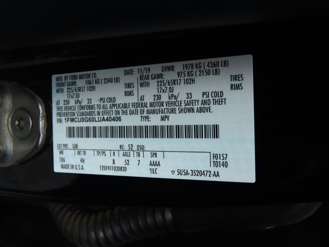Have confidence when purchasing your next ride. A CarFax report is included. It has had only one previous owner. Come by today to see this one in person. Go green with this fuel efficient 2020 Escape sporting an EPA estimated 30 MPG combined fuel rating. Drive some fun! A backup camera makes all the difference when parallel parking. Call today to schedule your test drive. With powered side mirrors. This SUV includes: an air filter for the cabin, dual exhaust ends, aluminum wheels, LED lamps in the rear and extremely convenient cruise control.