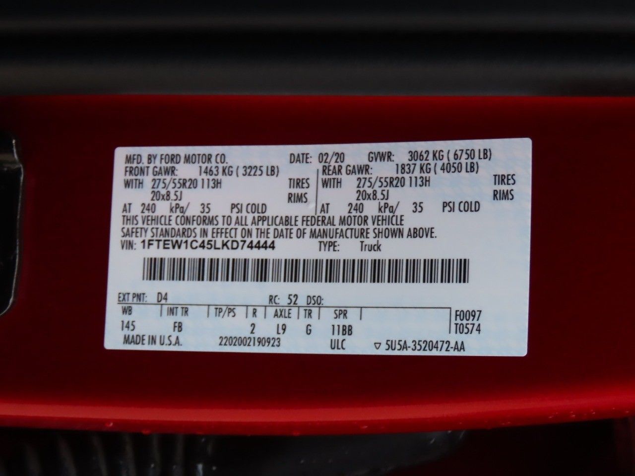 We've taken the time to do a background check on this 2020 F-150 and the CarFax Title History report says it's worthy. They assure it has had only one previous owner. You don't have to drive all over town...we have the truck you need in stock. A real stump puller! Gross Vehicle Weight Rating (GVWR) of 6,280+ lbs, Maximum Towing Capacity of 5,000+ lbs, 375 horsepower, 470 foot-pounds of torque, 3.5L V6 Ecoboost, Electronic 10-Speed Automatic, Rear Wheel Drive, and crew cab with a short bed. Save money with a fuel-efficient combined EPA estimated rating of 21 MPG combined. A backup camera makes all the difference when parallel parking. Features include: power mirrors, security system, a cabin air filtration system, cruise control and tire pressure monitoring system.