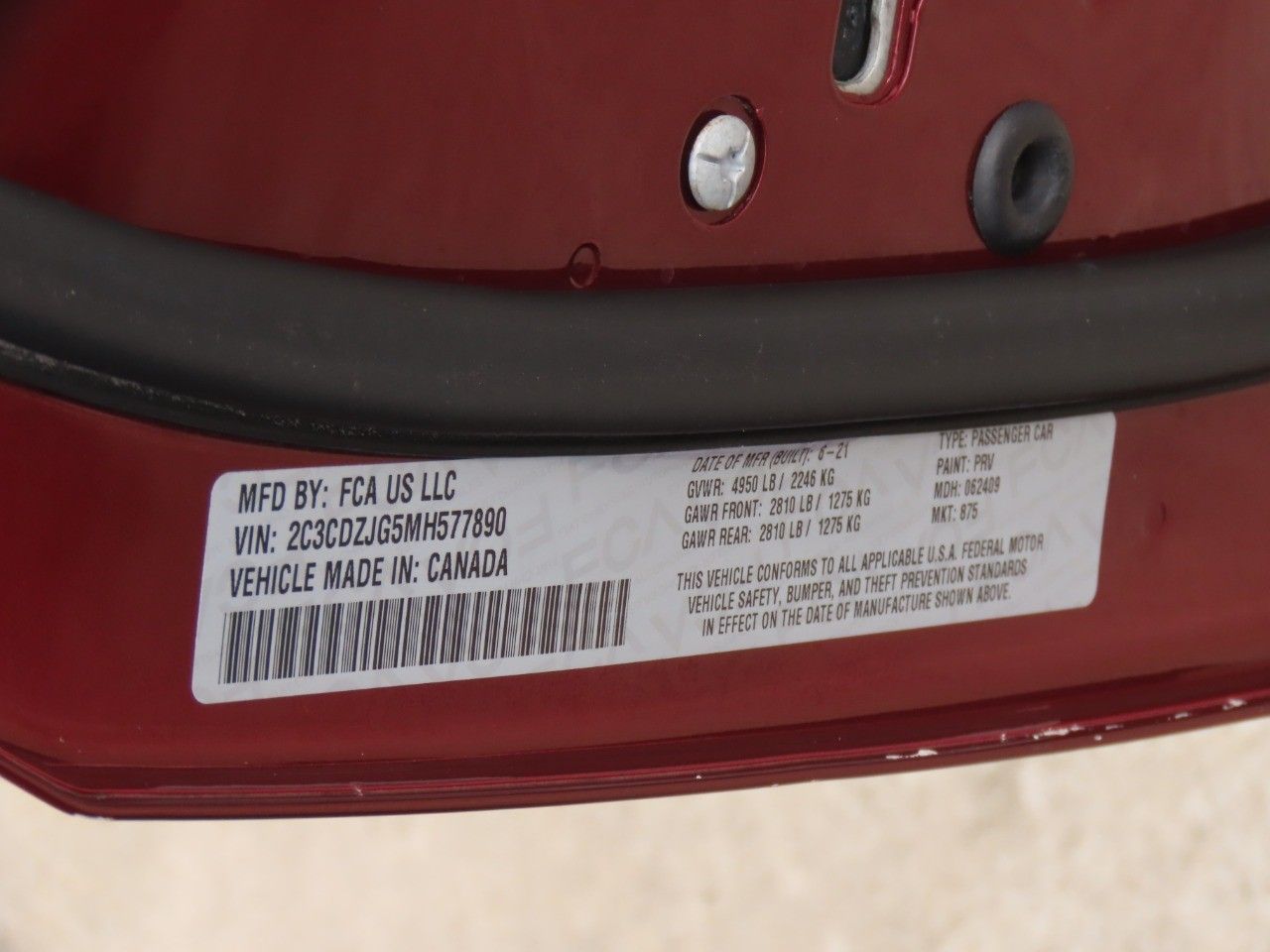 We use CarFax Title History Report to give you confidence when you buy from us. It has had only one previous owner. Stop by the showroom today to give her a test drive. Great fuel economy (EPA estimated 23 MPG combined) to fit perfectly into your budget. Drive some fun! A backup camera makes all the difference when parallel parking. A security system will deter potential thieves from stealing this 2021 Challenger. This car includes: a cabin air filtration system, dual exhaust ends, rear LED lights, cruise control and low tire pressure warning.