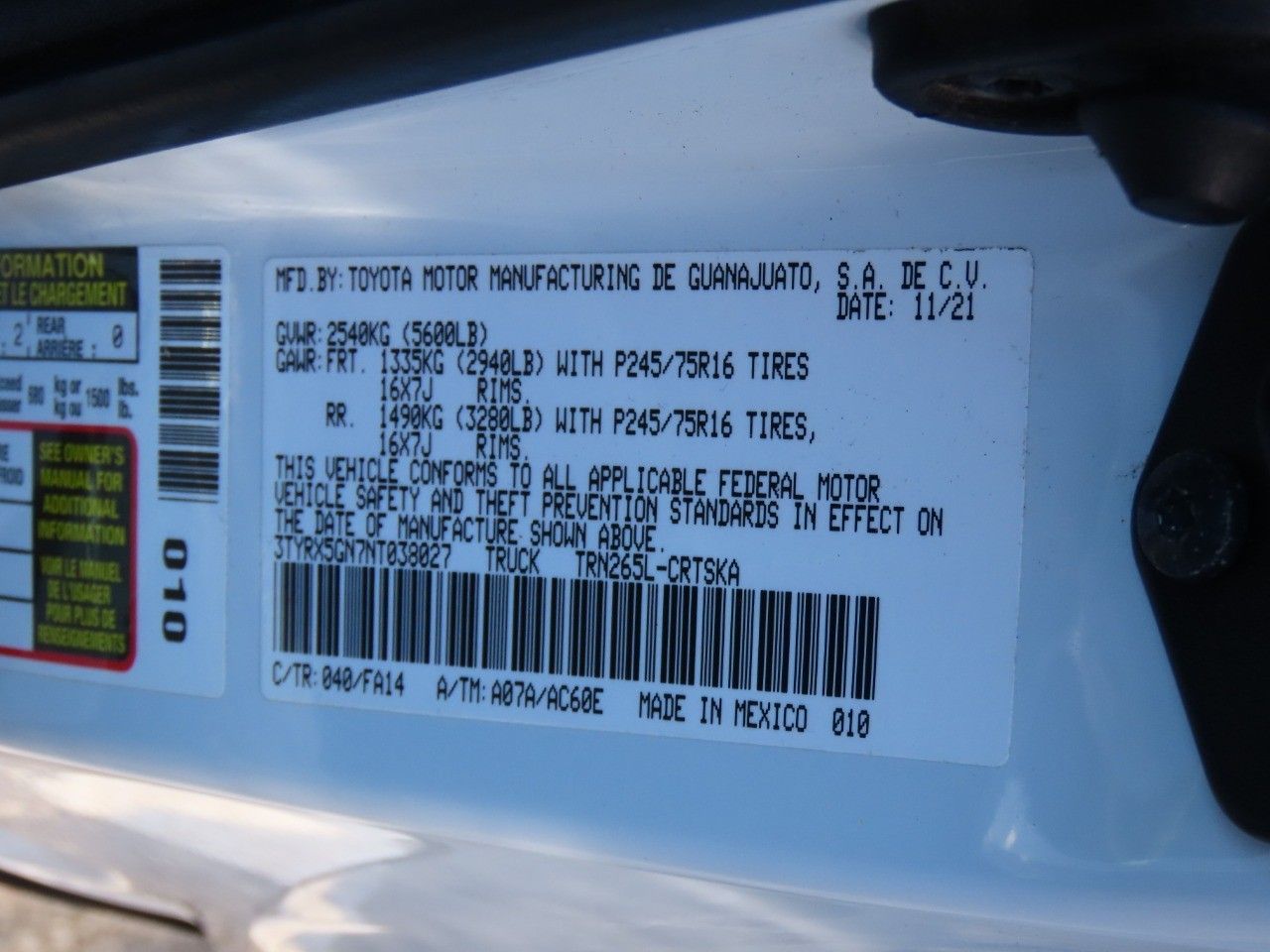 This 2022 Tacoma 2WD is a powerhouse. Great for towing. Gross Vehicle Weight Rating (GVWR) of 5,600 lbs, Maximum Towing Capacity of 3,500 lbs, 159 horsepower, 180 foot-pounds of torque, 2.7L DOHC 16-Valve I-4 w/VVT-i -inc: cast iron block w/aluminum alloy head and VVT-i, 6-Speed Automatic, Rear Wheel Drive, and extended cab with a long bed. This truck comes with a great EPA estimated fuel economy rating of 21 MPG combined. The rear view camera is perfect for backing into tight spots. The vehicle has powered exterior mirrors. This Tacoma 2WD includes: an air filter for the cabin, cruise control, tire pressure monitoring system and airbags.