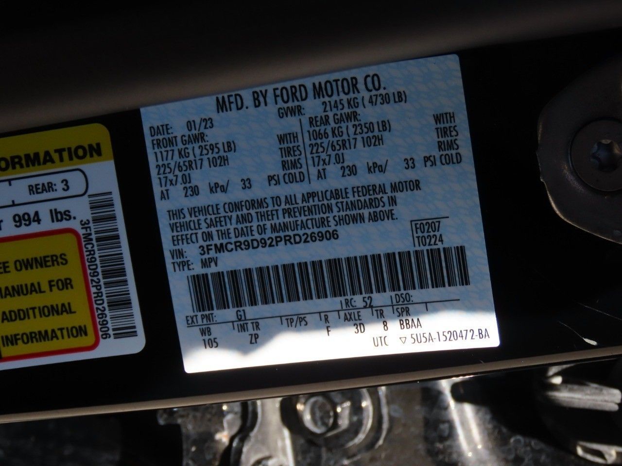The title check is an important part of the pre-owned buying process. And this 2023 Bronco Sport has it. CarFax says has had only one previous owner. Come by today to see this one in person. Save money with a fuel-efficient combined EPA estimated rating of 23 MPG combined. You'll forget how you ever drove without a rear view camera. Powered mirrors are a welcomed upgrade. Features include: security system, seamless Bluetooth integration, a cabin air filtration system, dual exhaust ends and LED lamps in the rear.