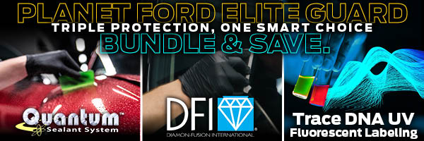 The Planet Ford Elite Guard Package bundles three premium protections into one convenient package to safeguard your vehicle’s appearance, safety, and security. In includes: Quantum Appearance Package exterior and interior sealants that bond to your vehicle’s paint, seats, and carpet, helping protect against environmental damage, stains, and everyday wear—while preserving your vehicle’s great looks and resale value with coverage not available from the factory. Diamon-Fusion® Windshield Treatment enhances visibility by sealing microscopic glass imperfections, helping resist chips and cracks, reduce night glare, and repel bugs and grime. Completing the bundle is Trace DNA UV Fluorescent Labeling, which permanently marks key vehicle panels to deter theft and may even qualify you for an insurance discount. Buying all three together delivers complete, long-term protection and added peace of mind—inside and out.